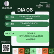 A partir das 19h, no dia 06/11, teremos a abertura do principal evento da SCTI, o Fator S Neste eventos, a comunidade interna e externa se dividirá em equipes para achar a solução para um problema real de uma grande empresa de Frutal. Acesse o link para se inscrever no FATOR S.